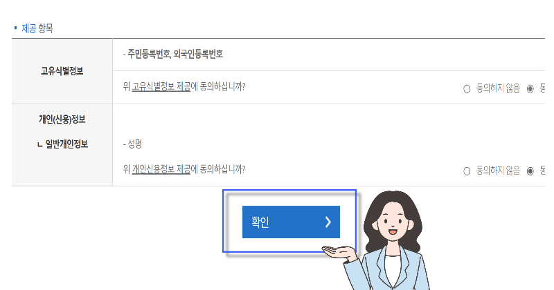 5. 약관을 읽고 동의 후 확인을 선택합니다.